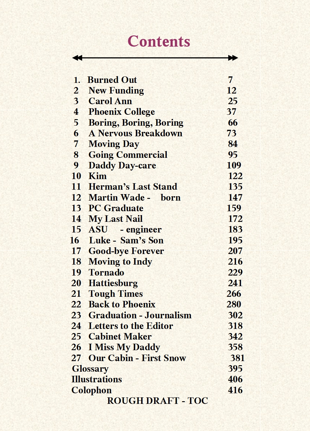 TABLE OF CONTENTS, Book 2